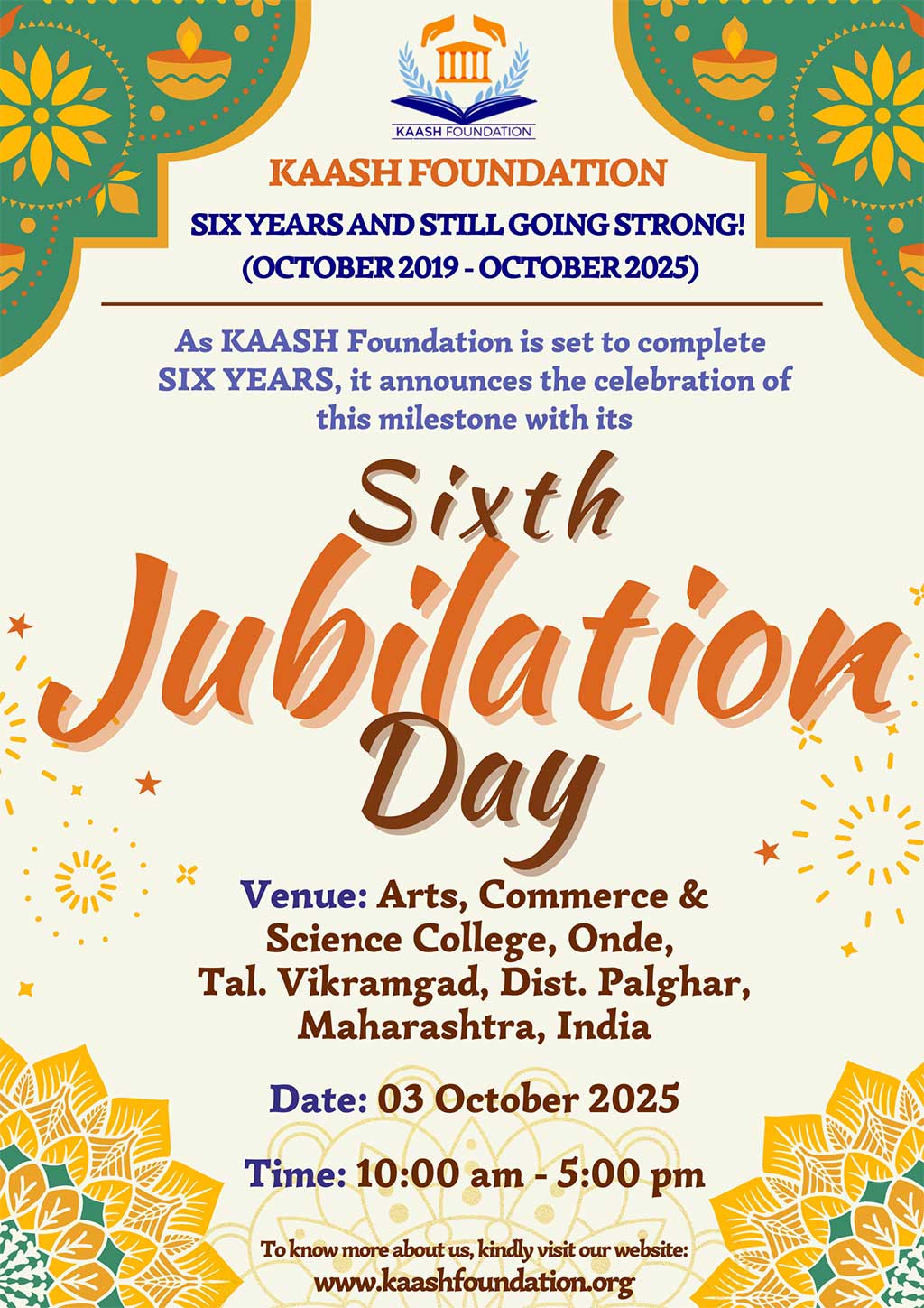 As Kaash Foundation is set to complete Six Years, it announces the celebration of this milestone wit its Sixth Jubilation Day.