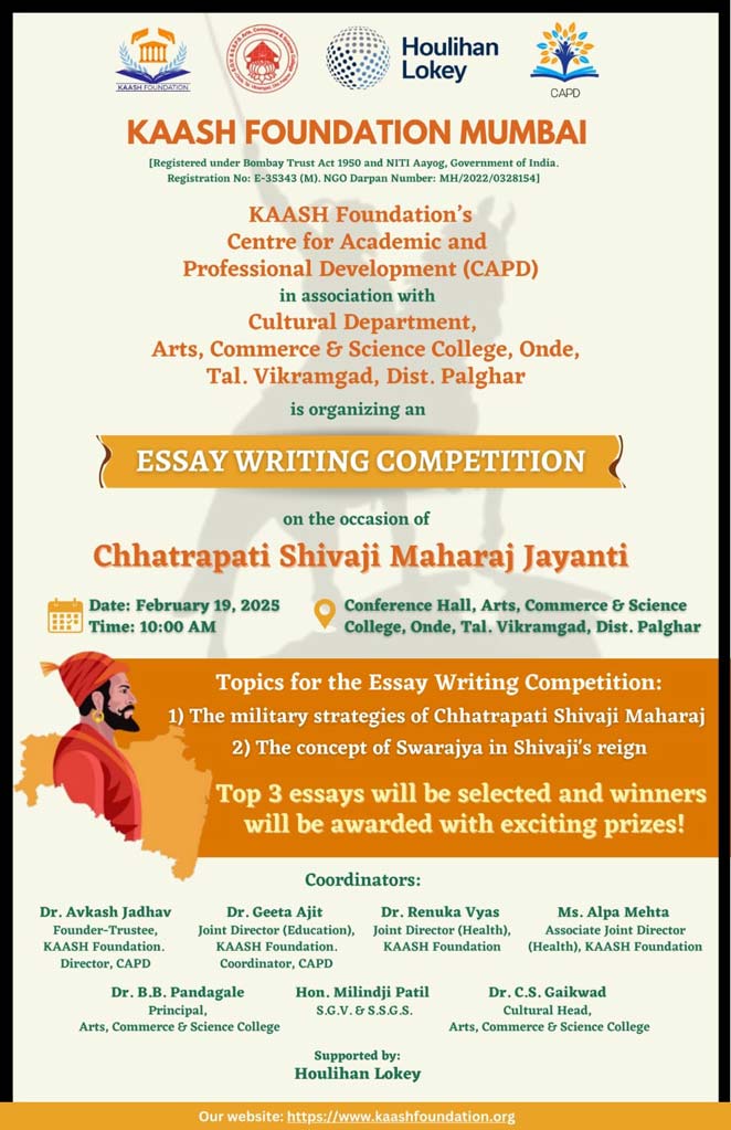 To celebrate the 395th birth anniversary of the great Maratha warlord and visionary leader, Chhatrapati Shivaji Maharaj, KAASH Foundation in association with Arts, Commerce & Science College, Onde, planned a chain of meaningful events within Vikramgad, Palghar District, on 19th February 2025. The event was not just a dedication to the legacy of Chhatrapati Shivaji Maharaj, but it was also an opportunity to promote education, culture, and community development.